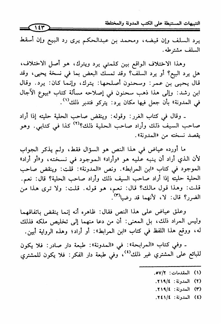 التنبيهات المستنبطة على الكتب المدونة والمختلطة