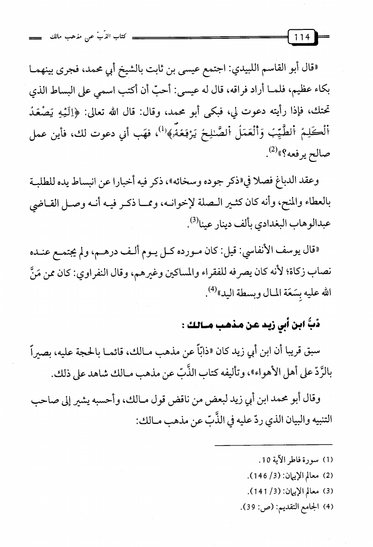 الذب عن مذهب مالك في غير شئ من أصوله وبعض مسائل من فروعه