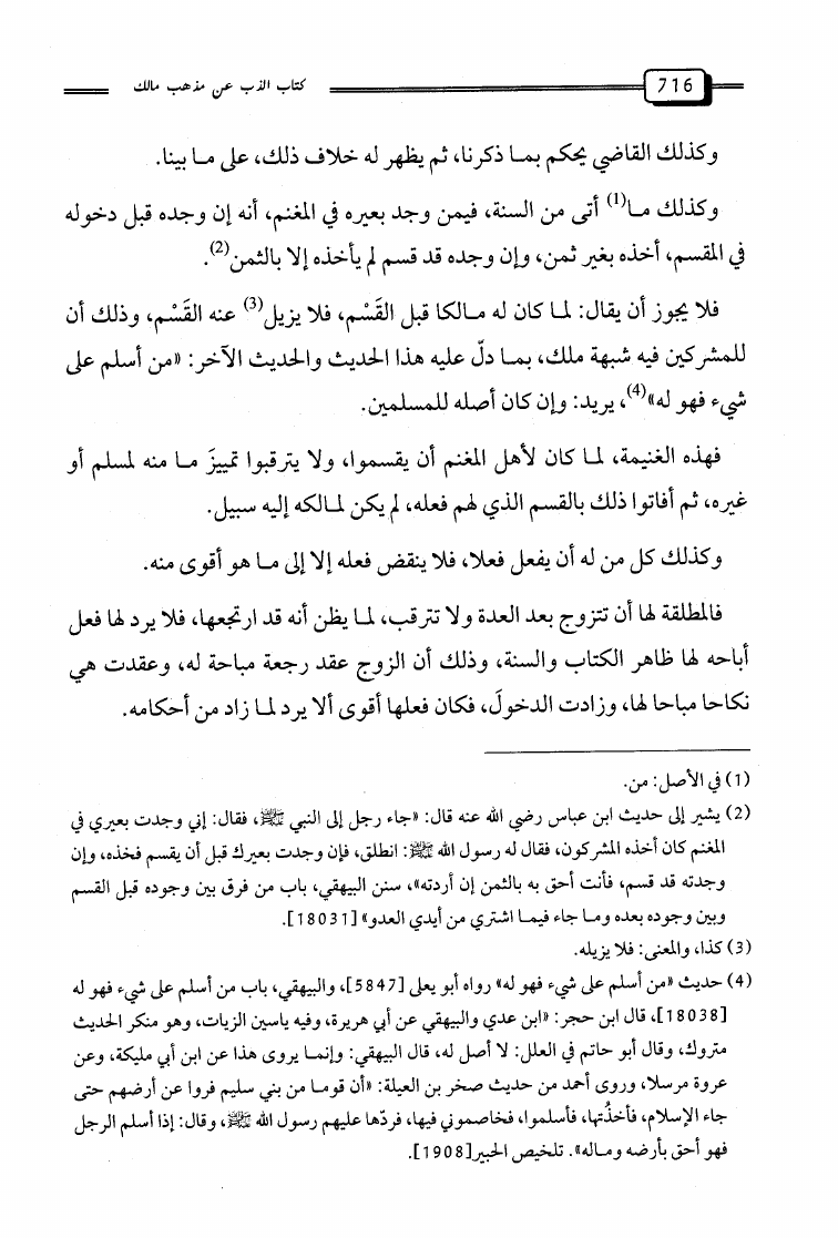 الذب عن مذهب مالك في غير شئ من أصوله وبعض مسائل من فروعه