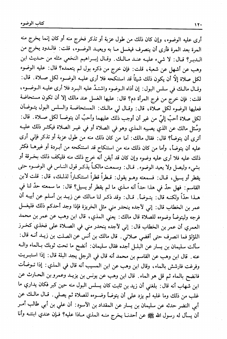 نام کتاب : المدونة الكبرى للإمام مالك رواية سحنون - ويليها مقدمات ابن رشد - ومعه: كتاب تزيين الممالك بمناقب سيدنا الإمام مالك للسيوطي، وكتاب مناقب سيدنا الإمام مالك للزواوي نویسنده : مالك بن أنس جلد : 1 صفحه : 120