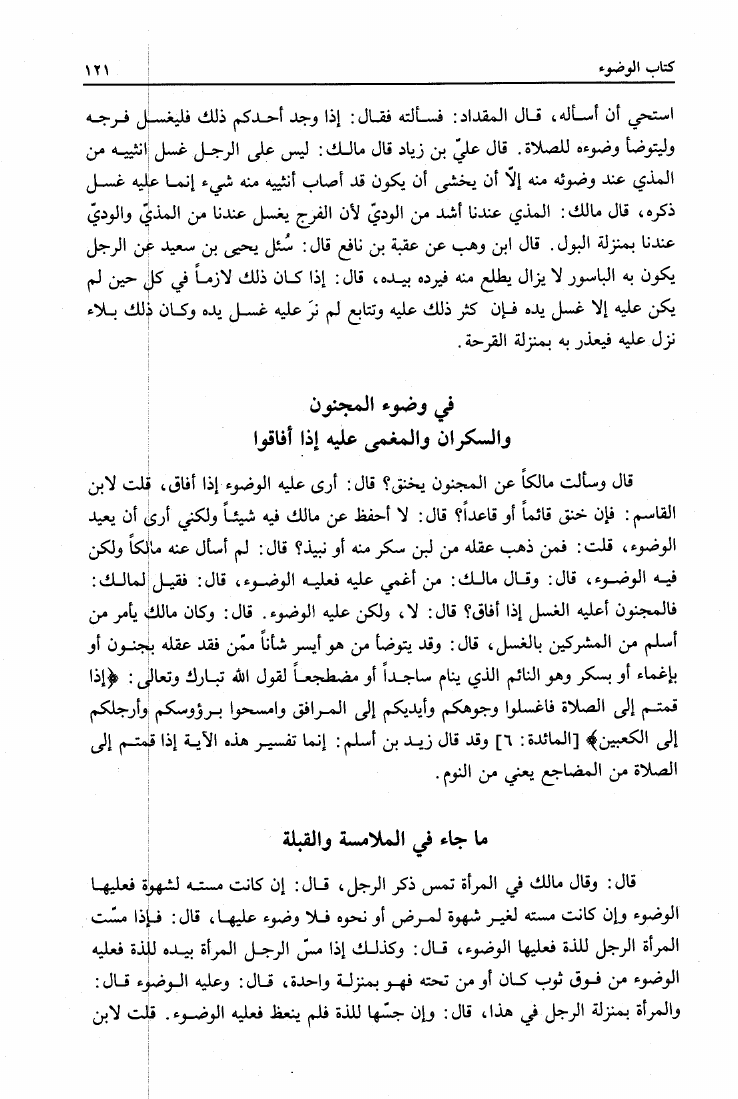 نام کتاب : المدونة الكبرى للإمام مالك رواية سحنون - ويليها مقدمات ابن رشد - ومعه: كتاب تزيين الممالك بمناقب سيدنا الإمام مالك للسيوطي، وكتاب مناقب سيدنا الإمام مالك للزواوي نویسنده : مالك بن أنس جلد : 1 صفحه : 121