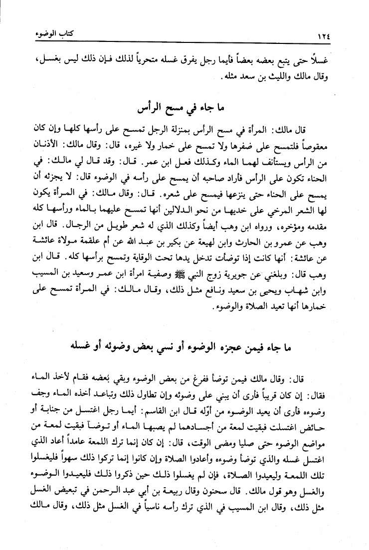 نام کتاب : المدونة الكبرى للإمام مالك رواية سحنون - ويليها مقدمات ابن رشد - ومعه: كتاب تزيين الممالك بمناقب سيدنا الإمام مالك للسيوطي، وكتاب مناقب سيدنا الإمام مالك للزواوي نویسنده : مالك بن أنس جلد : 1 صفحه : 124