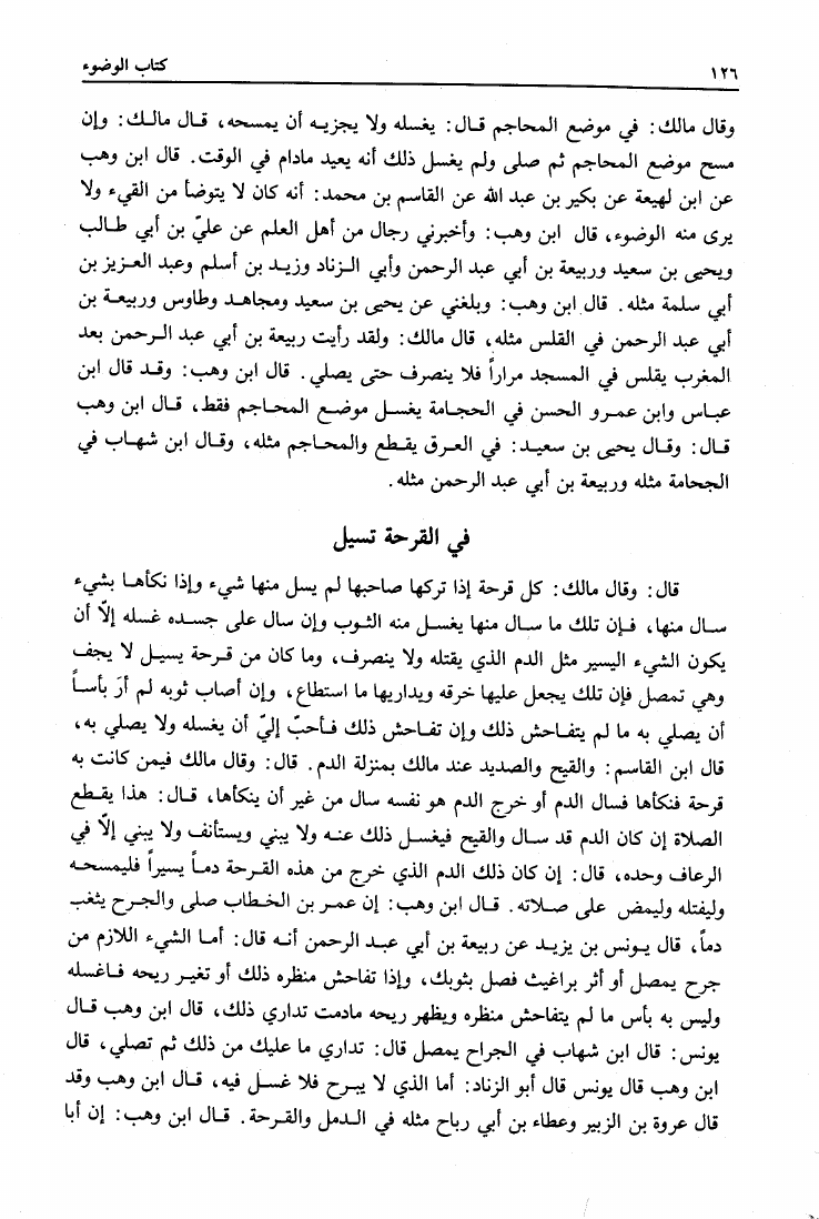 نام کتاب : المدونة الكبرى للإمام مالك رواية سحنون - ويليها مقدمات ابن رشد - ومعه: كتاب تزيين الممالك بمناقب سيدنا الإمام مالك للسيوطي، وكتاب مناقب سيدنا الإمام مالك للزواوي نویسنده : مالك بن أنس جلد : 1 صفحه : 126