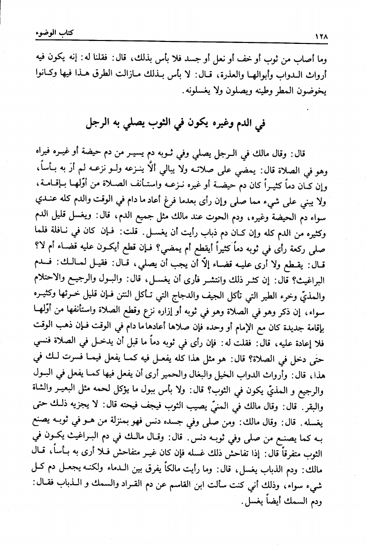 نام کتاب : المدونة الكبرى للإمام مالك رواية سحنون - ويليها مقدمات ابن رشد - ومعه: كتاب تزيين الممالك بمناقب سيدنا الإمام مالك للسيوطي، وكتاب مناقب سيدنا الإمام مالك للزواوي نویسنده : مالك بن أنس جلد : 1 صفحه : 128
