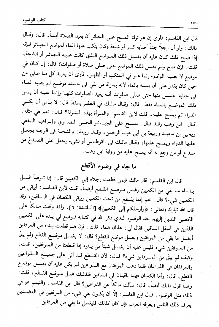 نام کتاب : المدونة الكبرى للإمام مالك رواية سحنون - ويليها مقدمات ابن رشد - ومعه: كتاب تزيين الممالك بمناقب سيدنا الإمام مالك للسيوطي، وكتاب مناقب سيدنا الإمام مالك للزواوي نویسنده : مالك بن أنس جلد : 1 صفحه : 130