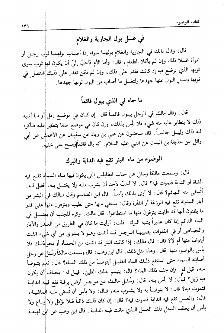 نام کتاب : المدونة الكبرى للإمام مالك رواية سحنون - ويليها مقدمات ابن رشد - ومعه: كتاب تزيين الممالك بمناقب سيدنا الإمام مالك للسيوطي، وكتاب مناقب سيدنا الإمام مالك للزواوي نویسنده : مالك بن أنس جلد : 1 صفحه : 131