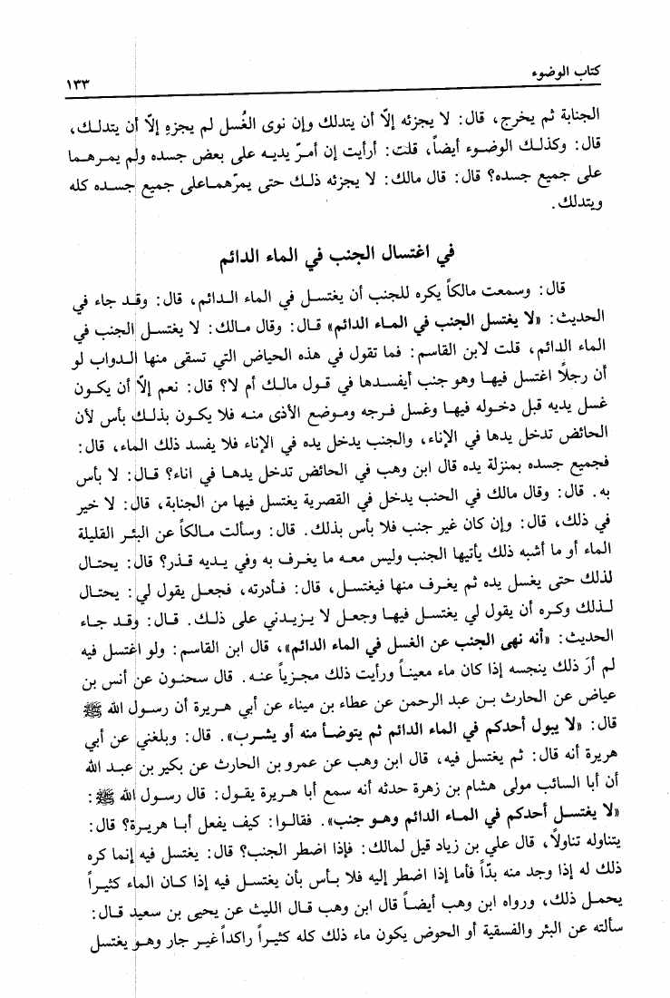 نام کتاب : المدونة الكبرى للإمام مالك رواية سحنون - ويليها مقدمات ابن رشد - ومعه: كتاب تزيين الممالك بمناقب سيدنا الإمام مالك للسيوطي، وكتاب مناقب سيدنا الإمام مالك للزواوي نویسنده : مالك بن أنس جلد : 1 صفحه : 133