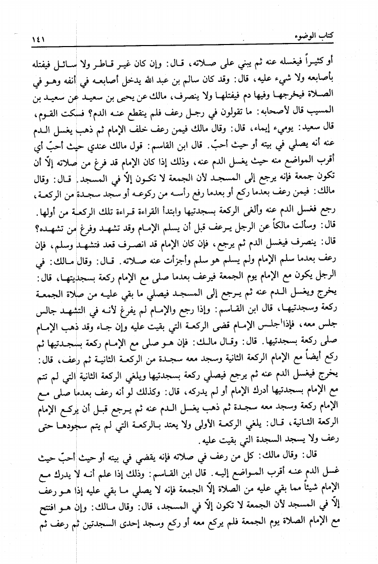 نام کتاب : المدونة الكبرى للإمام مالك رواية سحنون - ويليها مقدمات ابن رشد - ومعه: كتاب تزيين الممالك بمناقب سيدنا الإمام مالك للسيوطي، وكتاب مناقب سيدنا الإمام مالك للزواوي نویسنده : مالك بن أنس جلد : 1 صفحه : 141