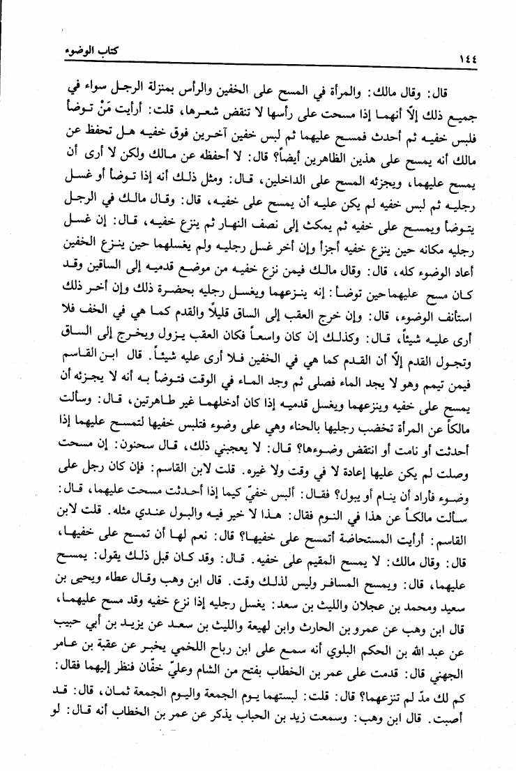 نام کتاب : المدونة الكبرى للإمام مالك رواية سحنون - ويليها مقدمات ابن رشد - ومعه: كتاب تزيين الممالك بمناقب سيدنا الإمام مالك للسيوطي، وكتاب مناقب سيدنا الإمام مالك للزواوي نویسنده : مالك بن أنس جلد : 1 صفحه : 144