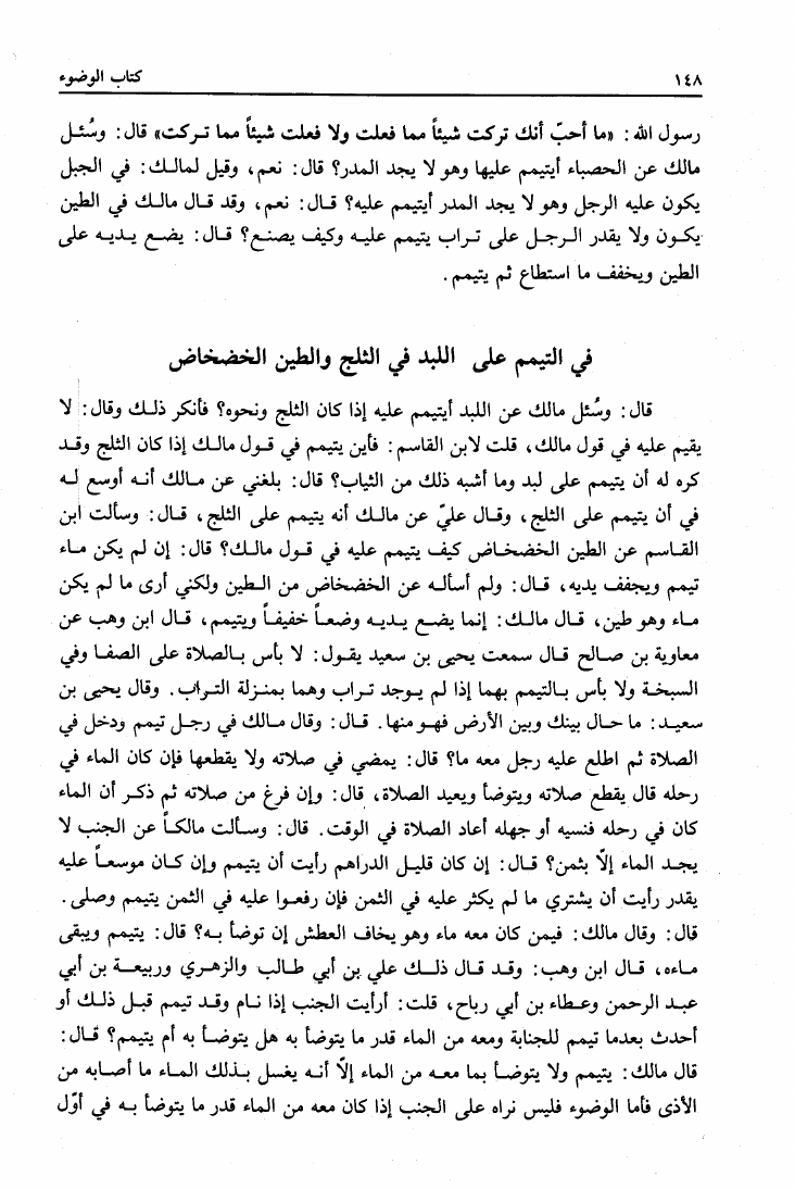 نام کتاب : المدونة الكبرى للإمام مالك رواية سحنون - ويليها مقدمات ابن رشد - ومعه: كتاب تزيين الممالك بمناقب سيدنا الإمام مالك للسيوطي، وكتاب مناقب سيدنا الإمام مالك للزواوي نویسنده : مالك بن أنس جلد : 1 صفحه : 148