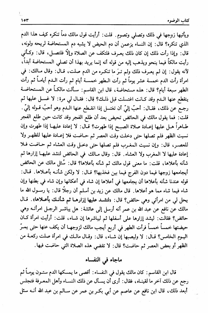 نام کتاب : المدونة الكبرى للإمام مالك رواية سحنون - ويليها مقدمات ابن رشد - ومعه: كتاب تزيين الممالك بمناقب سيدنا الإمام مالك للسيوطي، وكتاب مناقب سيدنا الإمام مالك للزواوي نویسنده : مالك بن أنس جلد : 1 صفحه : 153