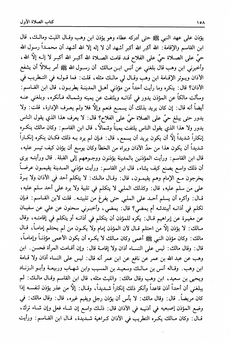 نام کتاب : المدونة الكبرى للإمام مالك رواية سحنون - ويليها مقدمات ابن رشد - ومعه: كتاب تزيين الممالك بمناقب سيدنا الإمام مالك للسيوطي، وكتاب مناقب سيدنا الإمام مالك للزواوي نویسنده : مالك بن أنس جلد : 1 صفحه : 158