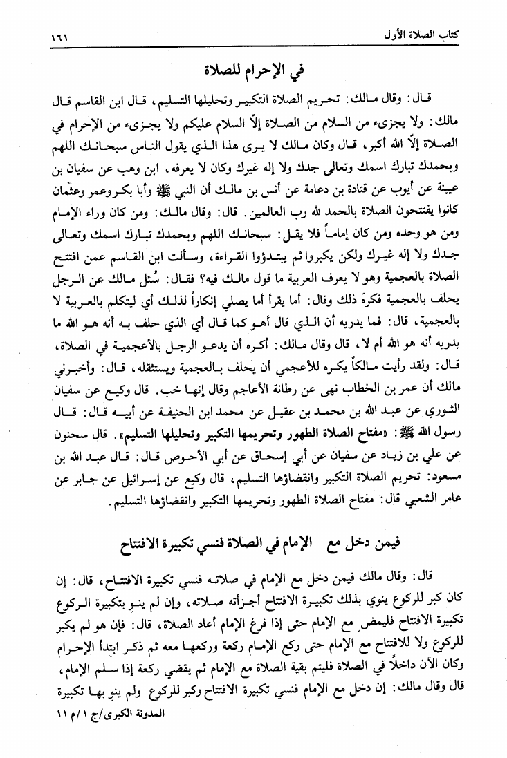 نام کتاب : المدونة الكبرى للإمام مالك رواية سحنون - ويليها مقدمات ابن رشد - ومعه: كتاب تزيين الممالك بمناقب سيدنا الإمام مالك للسيوطي، وكتاب مناقب سيدنا الإمام مالك للزواوي نویسنده : مالك بن أنس جلد : 1 صفحه : 161