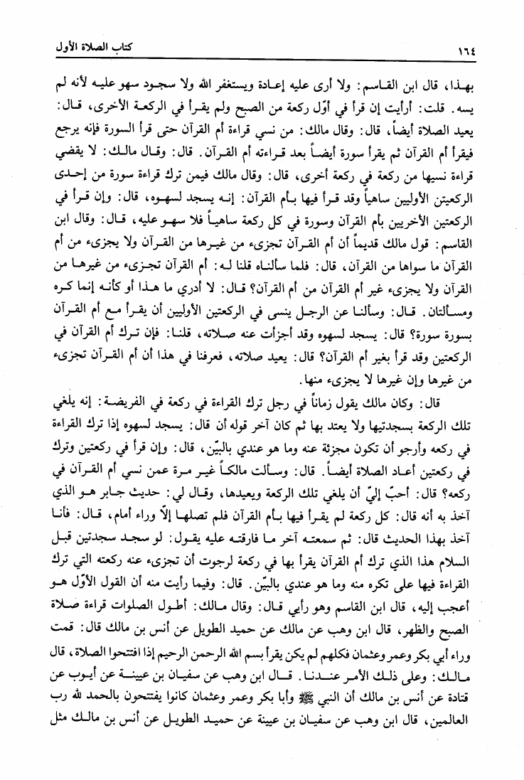 نام کتاب : المدونة الكبرى للإمام مالك رواية سحنون - ويليها مقدمات ابن رشد - ومعه: كتاب تزيين الممالك بمناقب سيدنا الإمام مالك للسيوطي، وكتاب مناقب سيدنا الإمام مالك للزواوي نویسنده : مالك بن أنس جلد : 1 صفحه : 164