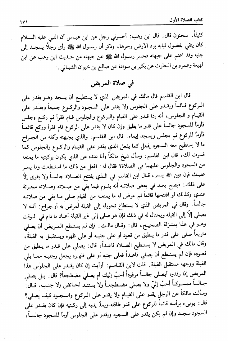 نام کتاب : المدونة الكبرى للإمام مالك رواية سحنون - ويليها مقدمات ابن رشد - ومعه: كتاب تزيين الممالك بمناقب سيدنا الإمام مالك للسيوطي، وكتاب مناقب سيدنا الإمام مالك للزواوي نویسنده : مالك بن أنس جلد : 1 صفحه : 171