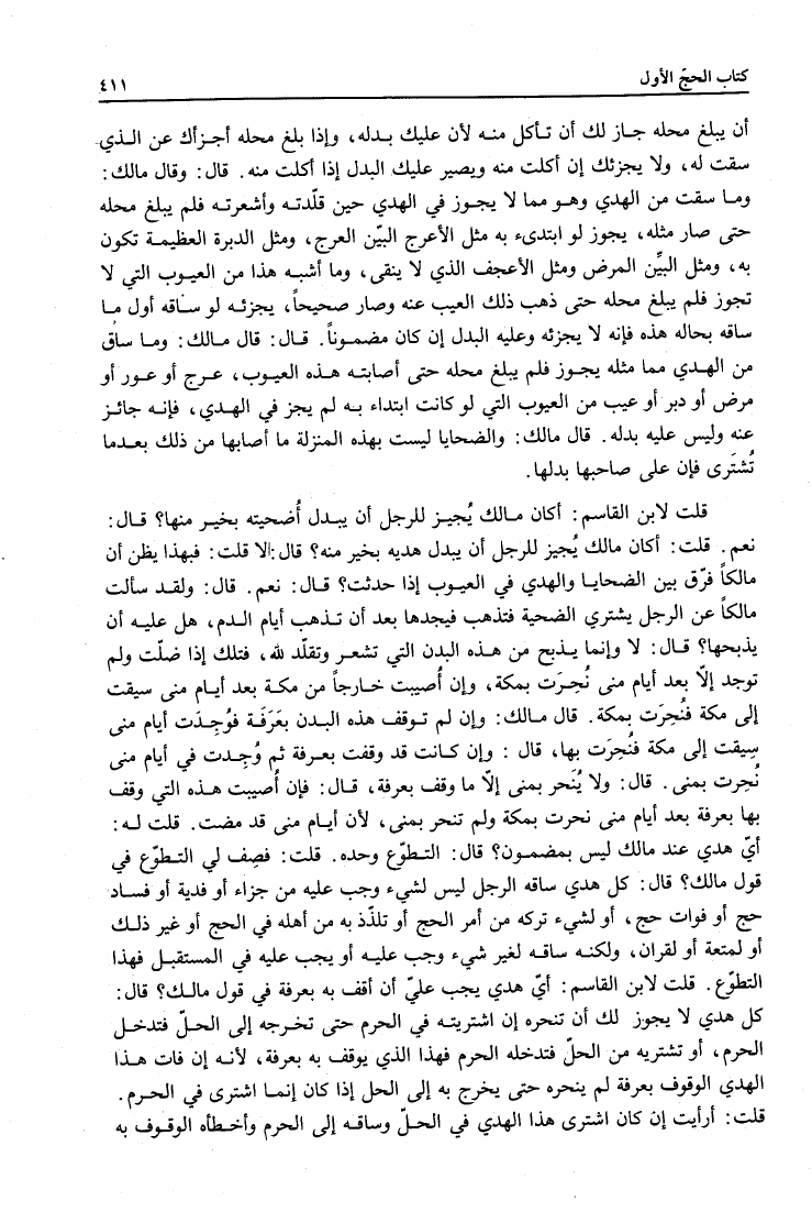 نام کتاب : المدونة الكبرى للإمام مالك رواية سحنون - ويليها مقدمات ابن رشد - ومعه: كتاب تزيين الممالك بمناقب سيدنا الإمام مالك للسيوطي، وكتاب مناقب سيدنا الإمام مالك للزواوي نویسنده : مالك بن أنس جلد : 1 صفحه : 411