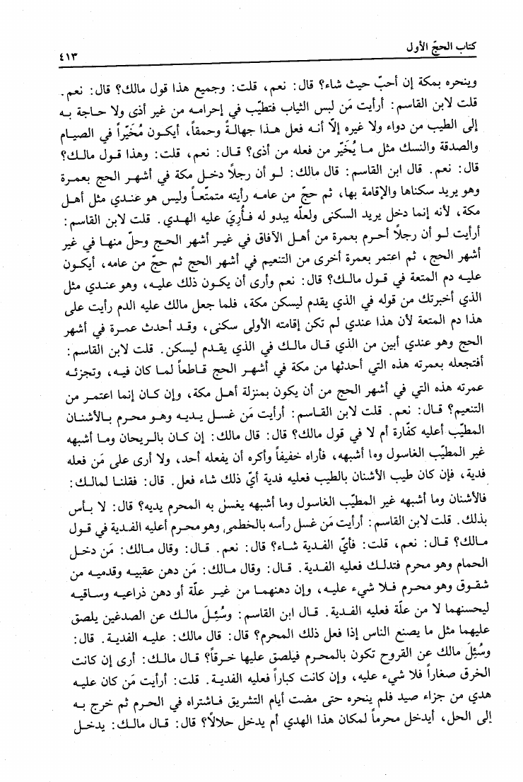 نام کتاب : المدونة الكبرى للإمام مالك رواية سحنون - ويليها مقدمات ابن رشد - ومعه: كتاب تزيين الممالك بمناقب سيدنا الإمام مالك للسيوطي، وكتاب مناقب سيدنا الإمام مالك للزواوي نویسنده : مالك بن أنس جلد : 1 صفحه : 413
