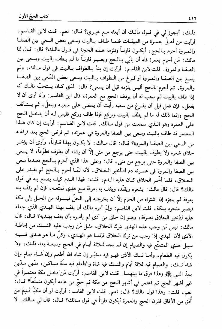 نام کتاب : المدونة الكبرى للإمام مالك رواية سحنون - ويليها مقدمات ابن رشد - ومعه: كتاب تزيين الممالك بمناقب سيدنا الإمام مالك للسيوطي، وكتاب مناقب سيدنا الإمام مالك للزواوي نویسنده : مالك بن أنس جلد : 1 صفحه : 416