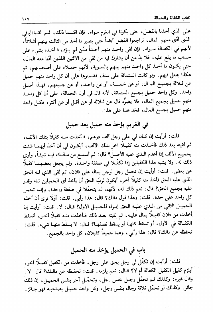 نام کتاب : المدونة الكبرى للإمام مالك رواية سحنون - ويليها مقدمات ابن رشد - ومعه: كتاب تزيين الممالك بمناقب سيدنا الإمام مالك للسيوطي، وكتاب مناقب سيدنا الإمام مالك للزواوي نویسنده : مالك بن أنس جلد : 4 صفحه : 107