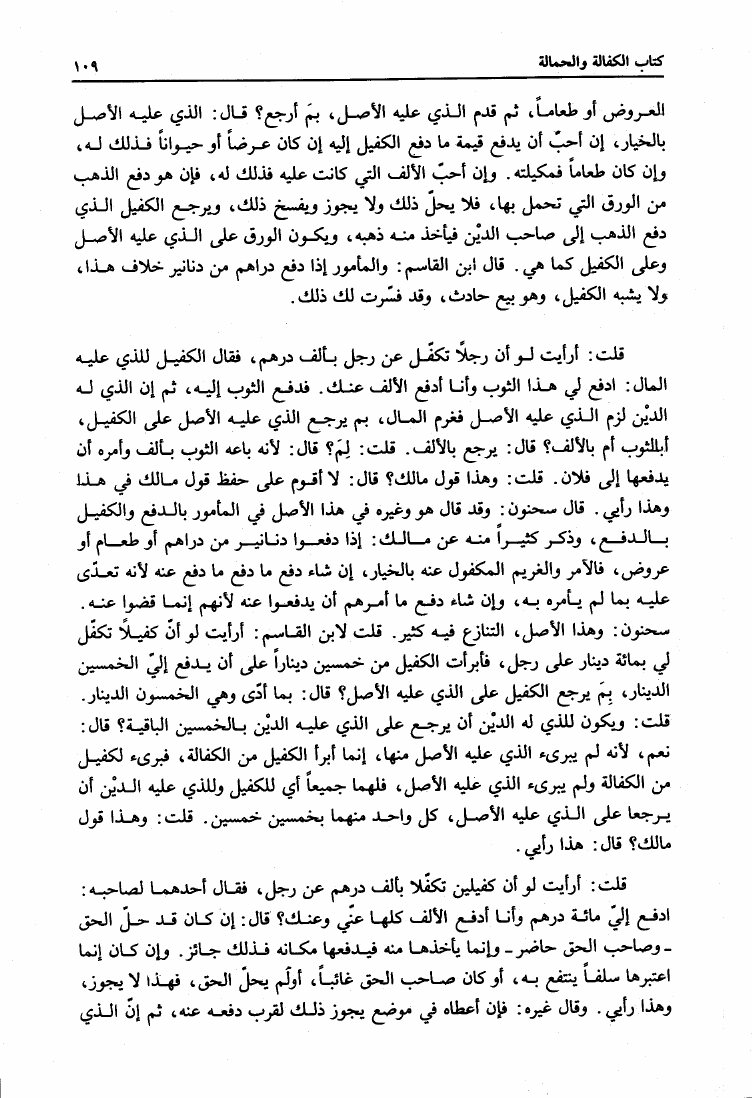نام کتاب : المدونة الكبرى للإمام مالك رواية سحنون - ويليها مقدمات ابن رشد - ومعه: كتاب تزيين الممالك بمناقب سيدنا الإمام مالك للسيوطي، وكتاب مناقب سيدنا الإمام مالك للزواوي نویسنده : مالك بن أنس جلد : 4 صفحه : 109
