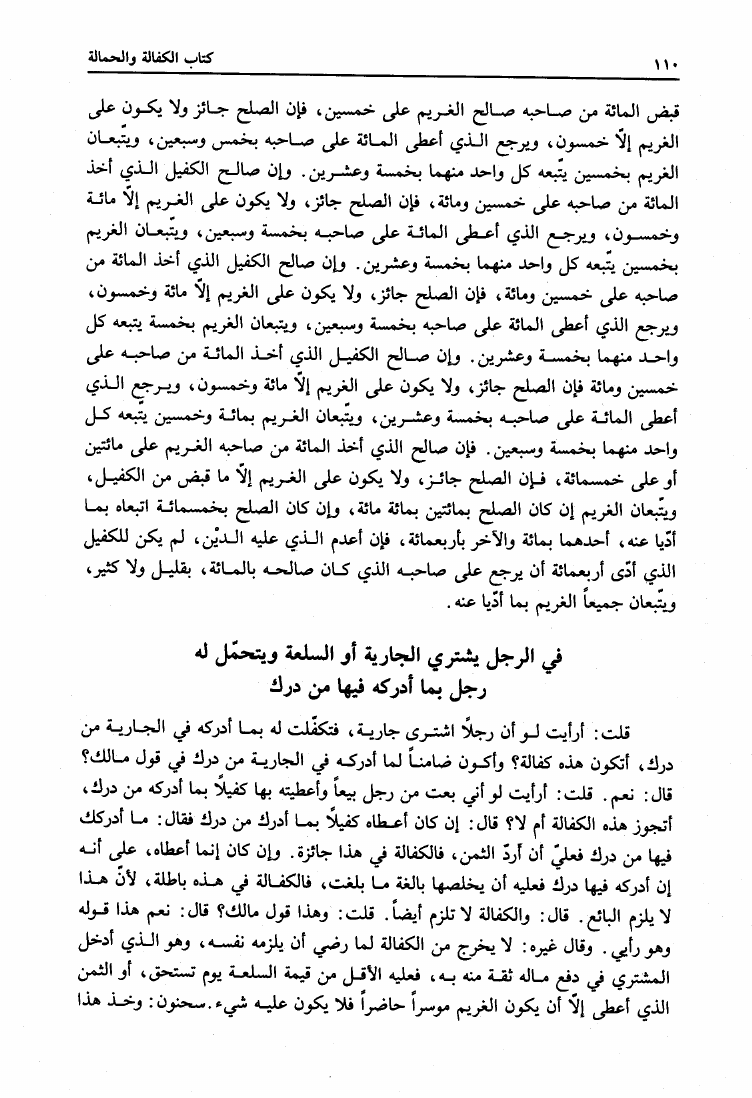 نام کتاب : المدونة الكبرى للإمام مالك رواية سحنون - ويليها مقدمات ابن رشد - ومعه: كتاب تزيين الممالك بمناقب سيدنا الإمام مالك للسيوطي، وكتاب مناقب سيدنا الإمام مالك للزواوي نویسنده : مالك بن أنس جلد : 4 صفحه : 110