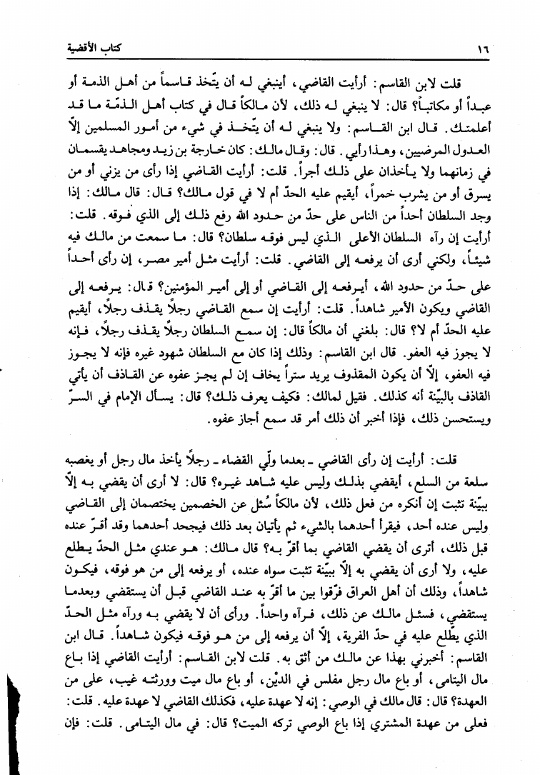 نام کتاب : المدونة الكبرى للإمام مالك رواية سحنون - ويليها مقدمات ابن رشد - ومعه: كتاب تزيين الممالك بمناقب سيدنا الإمام مالك للسيوطي، وكتاب مناقب سيدنا الإمام مالك للزواوي نویسنده : مالك بن أنس جلد : 4 صفحه : 16