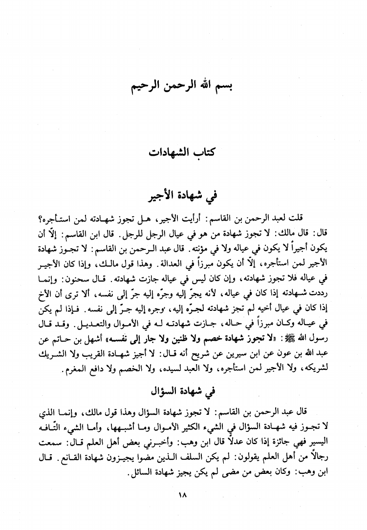 نام کتاب : المدونة الكبرى للإمام مالك رواية سحنون - ويليها مقدمات ابن رشد - ومعه: كتاب تزيين الممالك بمناقب سيدنا الإمام مالك للسيوطي، وكتاب مناقب سيدنا الإمام مالك للزواوي نویسنده : مالك بن أنس جلد : 4 صفحه : 18