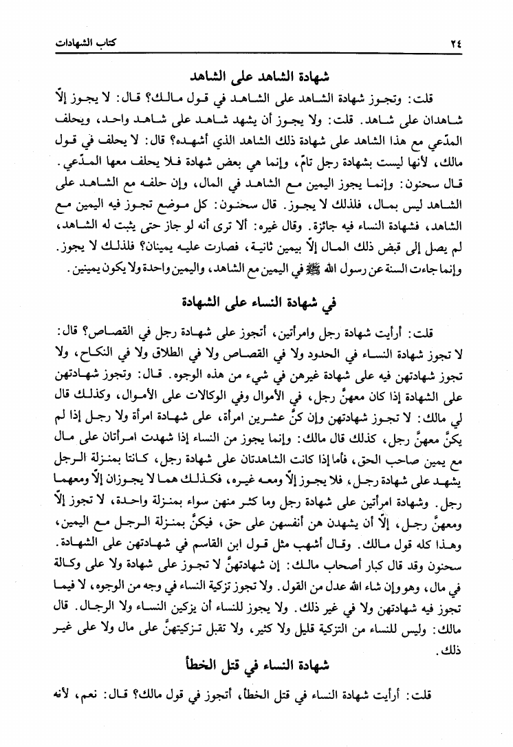 نام کتاب : المدونة الكبرى للإمام مالك رواية سحنون - ويليها مقدمات ابن رشد - ومعه: كتاب تزيين الممالك بمناقب سيدنا الإمام مالك للسيوطي، وكتاب مناقب سيدنا الإمام مالك للزواوي نویسنده : مالك بن أنس جلد : 4 صفحه : 24