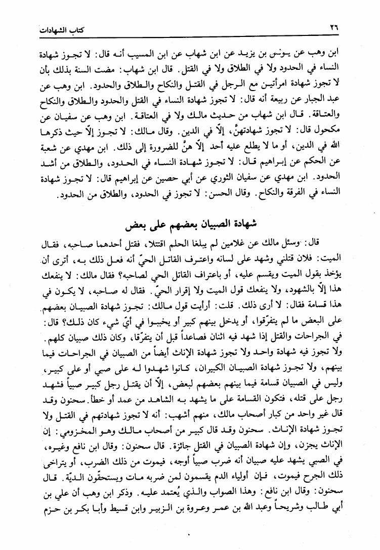 نام کتاب : المدونة الكبرى للإمام مالك رواية سحنون - ويليها مقدمات ابن رشد - ومعه: كتاب تزيين الممالك بمناقب سيدنا الإمام مالك للسيوطي، وكتاب مناقب سيدنا الإمام مالك للزواوي نویسنده : مالك بن أنس جلد : 4 صفحه : 26