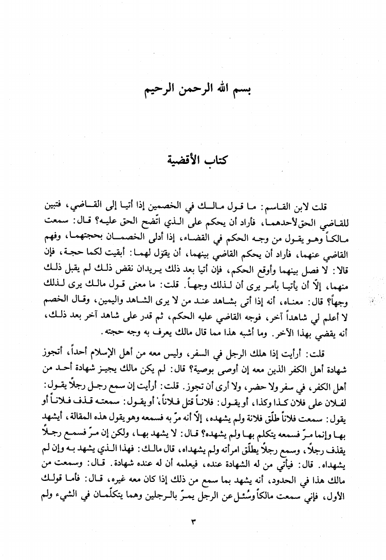 نام کتاب : المدونة الكبرى للإمام مالك رواية سحنون - ويليها مقدمات ابن رشد - ومعه: كتاب تزيين الممالك بمناقب سيدنا الإمام مالك للسيوطي، وكتاب مناقب سيدنا الإمام مالك للزواوي نویسنده : مالك بن أنس جلد : 4 صفحه : 3