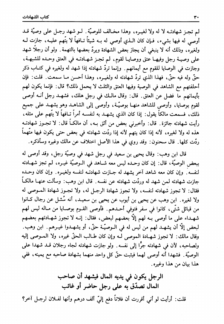 نام کتاب : المدونة الكبرى للإمام مالك رواية سحنون - ويليها مقدمات ابن رشد - ومعه: كتاب تزيين الممالك بمناقب سيدنا الإمام مالك للسيوطي، وكتاب مناقب سيدنا الإمام مالك للزواوي نویسنده : مالك بن أنس جلد : 4 صفحه : 30
