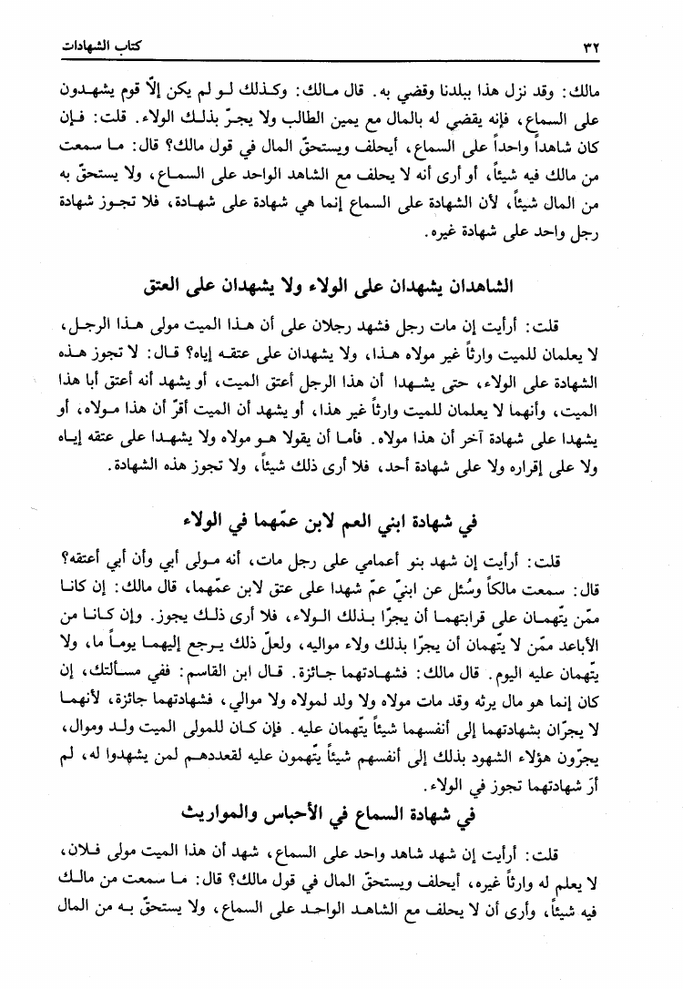 نام کتاب : المدونة الكبرى للإمام مالك رواية سحنون - ويليها مقدمات ابن رشد - ومعه: كتاب تزيين الممالك بمناقب سيدنا الإمام مالك للسيوطي، وكتاب مناقب سيدنا الإمام مالك للزواوي نویسنده : مالك بن أنس جلد : 4 صفحه : 32