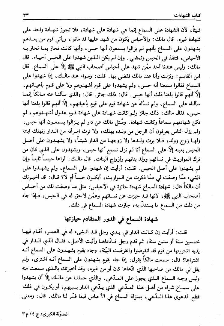نام کتاب : المدونة الكبرى للإمام مالك رواية سحنون - ويليها مقدمات ابن رشد - ومعه: كتاب تزيين الممالك بمناقب سيدنا الإمام مالك للسيوطي، وكتاب مناقب سيدنا الإمام مالك للزواوي نویسنده : مالك بن أنس جلد : 4 صفحه : 33
