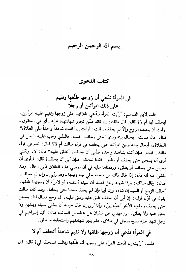 نام کتاب : المدونة الكبرى للإمام مالك رواية سحنون - ويليها مقدمات ابن رشد - ومعه: كتاب تزيين الممالك بمناقب سيدنا الإمام مالك للسيوطي، وكتاب مناقب سيدنا الإمام مالك للزواوي نویسنده : مالك بن أنس جلد : 4 صفحه : 38