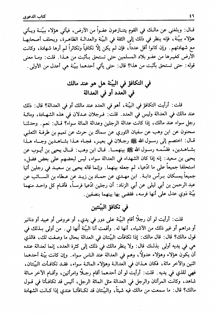 نام کتاب : المدونة الكبرى للإمام مالك رواية سحنون - ويليها مقدمات ابن رشد - ومعه: كتاب تزيين الممالك بمناقب سيدنا الإمام مالك للسيوطي، وكتاب مناقب سيدنا الإمام مالك للزواوي نویسنده : مالك بن أنس جلد : 4 صفحه : 46