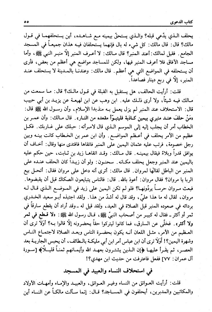 نام کتاب : المدونة الكبرى للإمام مالك رواية سحنون - ويليها مقدمات ابن رشد - ومعه: كتاب تزيين الممالك بمناقب سيدنا الإمام مالك للسيوطي، وكتاب مناقب سيدنا الإمام مالك للزواوي نویسنده : مالك بن أنس جلد : 4 صفحه : 55