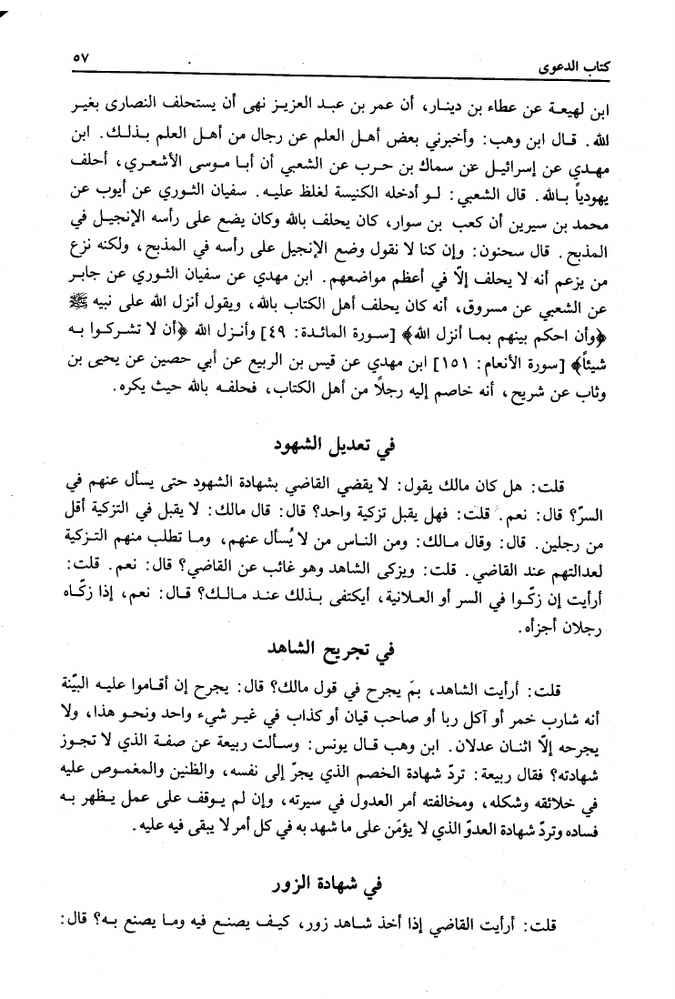 نام کتاب : المدونة الكبرى للإمام مالك رواية سحنون - ويليها مقدمات ابن رشد - ومعه: كتاب تزيين الممالك بمناقب سيدنا الإمام مالك للسيوطي، وكتاب مناقب سيدنا الإمام مالك للزواوي نویسنده : مالك بن أنس جلد : 4 صفحه : 57