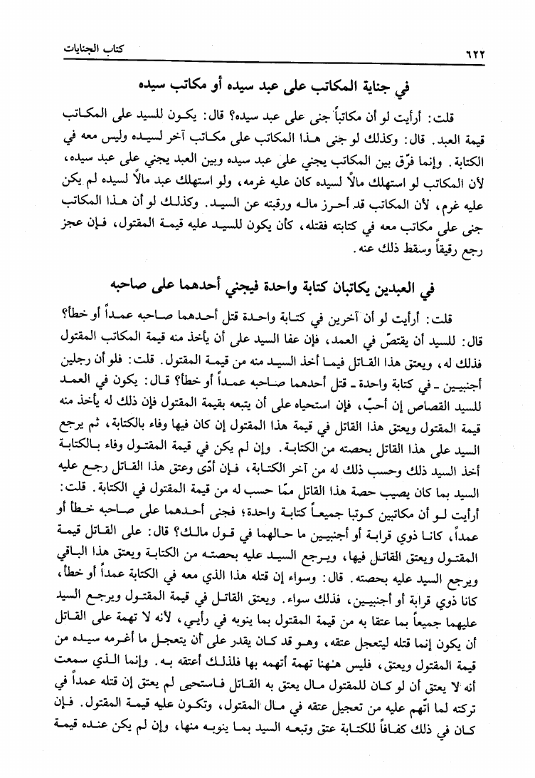 نام کتاب : المدونة الكبرى للإمام مالك رواية سحنون - ويليها مقدمات ابن رشد - ومعه: كتاب تزيين الممالك بمناقب سيدنا الإمام مالك للسيوطي، وكتاب مناقب سيدنا الإمام مالك للزواوي نویسنده : مالك بن أنس جلد : 4 صفحه : 622