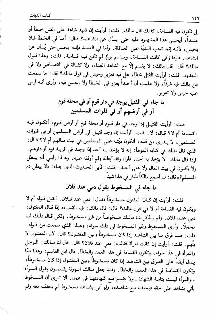 نام کتاب : المدونة الكبرى للإمام مالك رواية سحنون - ويليها مقدمات ابن رشد - ومعه: كتاب تزيين الممالك بمناقب سيدنا الإمام مالك للسيوطي، وكتاب مناقب سيدنا الإمام مالك للزواوي نویسنده : مالك بن أنس جلد : 4 صفحه : 646