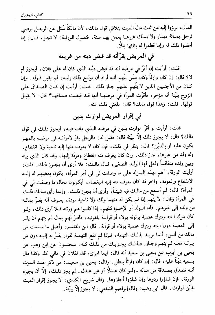 نام کتاب : المدونة الكبرى للإمام مالك رواية سحنون - ويليها مقدمات ابن رشد - ومعه: كتاب تزيين الممالك بمناقب سيدنا الإمام مالك للسيوطي، وكتاب مناقب سيدنا الإمام مالك للزواوي نویسنده : مالك بن أنس جلد : 4 صفحه : 66