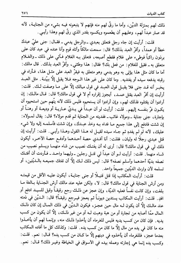 نام کتاب : المدونة الكبرى للإمام مالك رواية سحنون - ويليها مقدمات ابن رشد - ومعه: كتاب تزيين الممالك بمناقب سيدنا الإمام مالك للسيوطي، وكتاب مناقب سيدنا الإمام مالك للزواوي نویسنده : مالك بن أنس جلد : 4 صفحه : 671