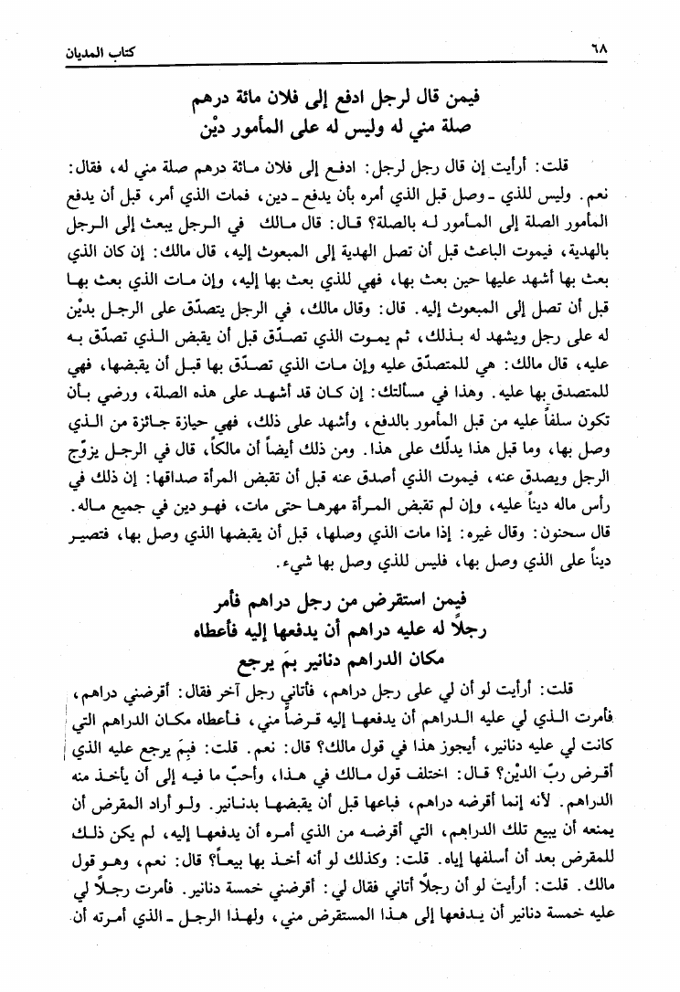 نام کتاب : المدونة الكبرى للإمام مالك رواية سحنون - ويليها مقدمات ابن رشد - ومعه: كتاب تزيين الممالك بمناقب سيدنا الإمام مالك للسيوطي، وكتاب مناقب سيدنا الإمام مالك للزواوي نویسنده : مالك بن أنس جلد : 4 صفحه : 68