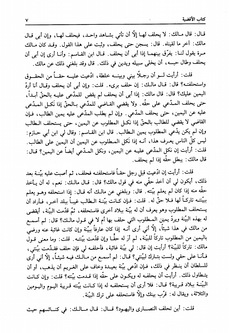نام کتاب : المدونة الكبرى للإمام مالك رواية سحنون - ويليها مقدمات ابن رشد - ومعه: كتاب تزيين الممالك بمناقب سيدنا الإمام مالك للسيوطي، وكتاب مناقب سيدنا الإمام مالك للزواوي نویسنده : مالك بن أنس جلد : 4 صفحه : 7