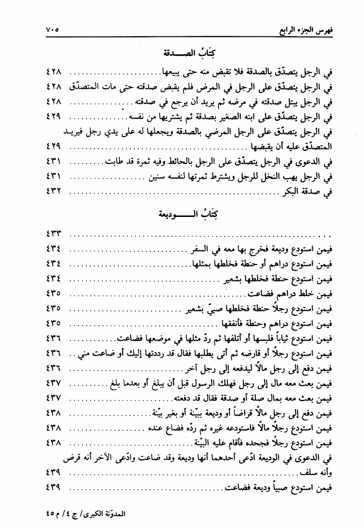 نام کتاب : المدونة الكبرى للإمام مالك رواية سحنون - ويليها مقدمات ابن رشد - ومعه: كتاب تزيين الممالك بمناقب سيدنا الإمام مالك للسيوطي، وكتاب مناقب سيدنا الإمام مالك للزواوي نویسنده : مالك بن أنس جلد : 4 صفحه : 705