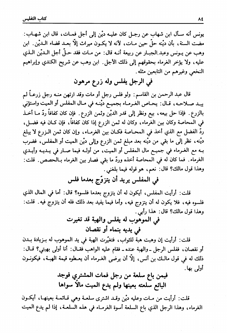 نام کتاب : المدونة الكبرى للإمام مالك رواية سحنون - ويليها مقدمات ابن رشد - ومعه: كتاب تزيين الممالك بمناقب سيدنا الإمام مالك للسيوطي، وكتاب مناقب سيدنا الإمام مالك للزواوي نویسنده : مالك بن أنس جلد : 4 صفحه : 84