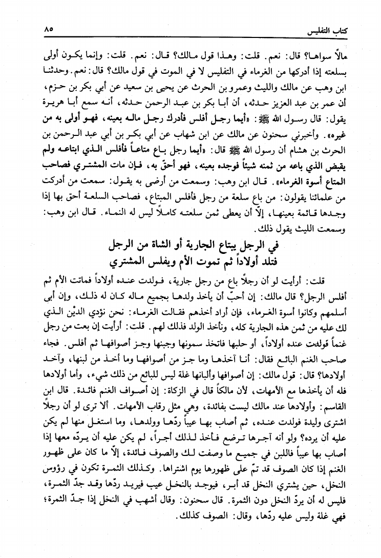 نام کتاب : المدونة الكبرى للإمام مالك رواية سحنون - ويليها مقدمات ابن رشد - ومعه: كتاب تزيين الممالك بمناقب سيدنا الإمام مالك للسيوطي، وكتاب مناقب سيدنا الإمام مالك للزواوي نویسنده : مالك بن أنس جلد : 4 صفحه : 85