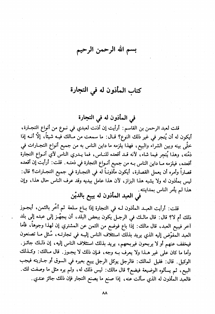 نام کتاب : المدونة الكبرى للإمام مالك رواية سحنون - ويليها مقدمات ابن رشد - ومعه: كتاب تزيين الممالك بمناقب سيدنا الإمام مالك للسيوطي، وكتاب مناقب سيدنا الإمام مالك للزواوي نویسنده : مالك بن أنس جلد : 4 صفحه : 88