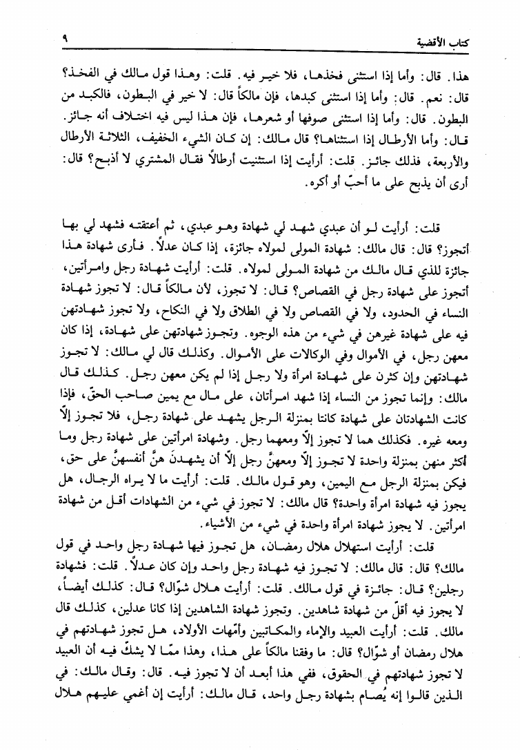 نام کتاب : المدونة الكبرى للإمام مالك رواية سحنون - ويليها مقدمات ابن رشد - ومعه: كتاب تزيين الممالك بمناقب سيدنا الإمام مالك للسيوطي، وكتاب مناقب سيدنا الإمام مالك للزواوي نویسنده : مالك بن أنس جلد : 4 صفحه : 9