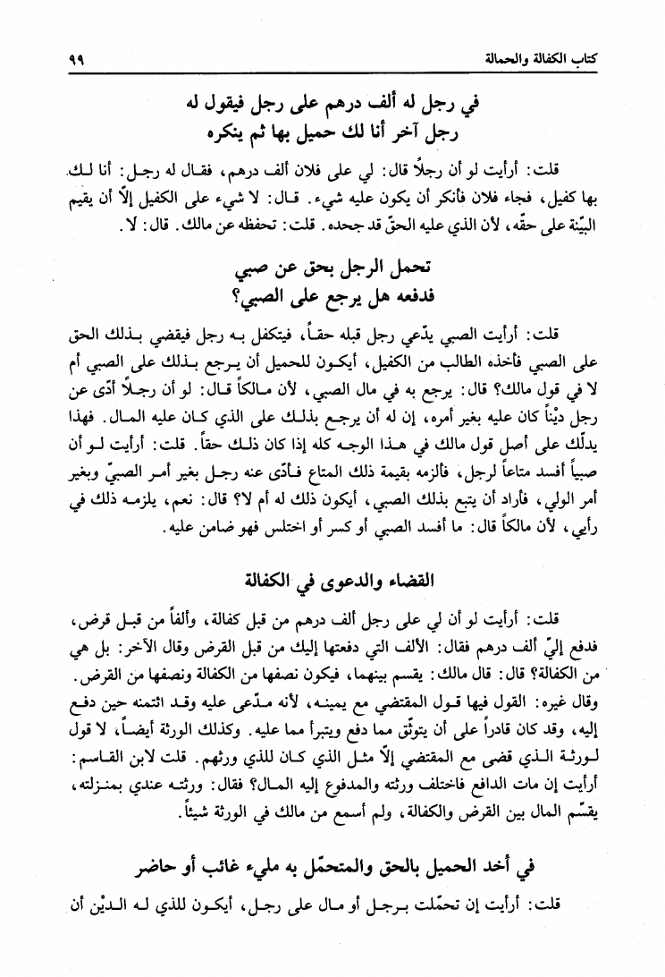 نام کتاب : المدونة الكبرى للإمام مالك رواية سحنون - ويليها مقدمات ابن رشد - ومعه: كتاب تزيين الممالك بمناقب سيدنا الإمام مالك للسيوطي، وكتاب مناقب سيدنا الإمام مالك للزواوي نویسنده : مالك بن أنس جلد : 4 صفحه : 99