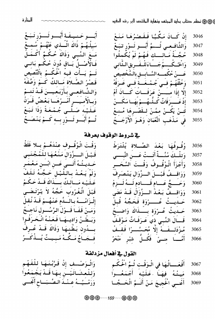 المنارة نظم كتاب بداية المجتهد ونهاية المقتصد
